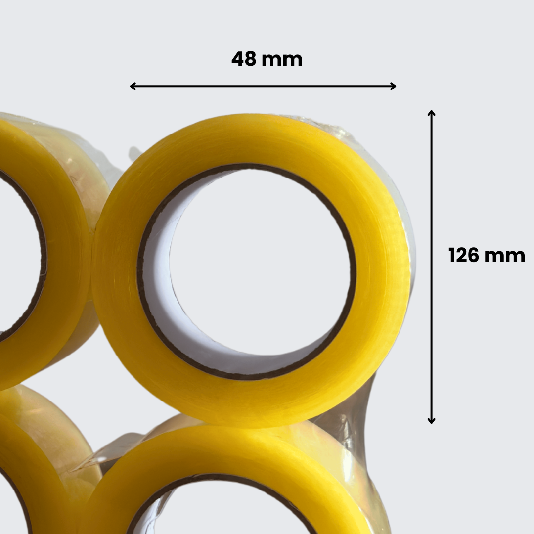 El precinto transparente acrílico de 48 mm x 126 mm es una cinta adhesiva profesional diseñada para cerrar y proteger cajas de manera firme y segura.